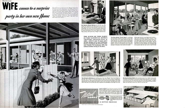 Click on the small images to the rightand enjoy a fascinatinggallery of vintage 1950's National Homes print-ads.